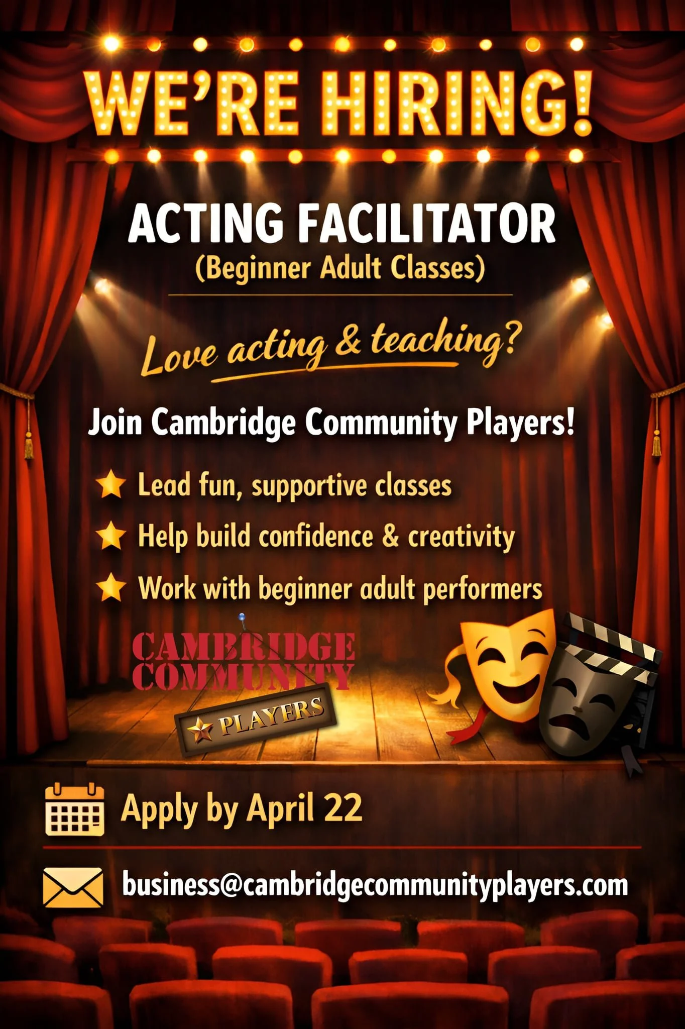 Cambridge Community Players is seeking an enthusiastic and experienced Acting